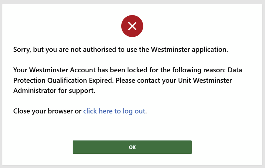 If your County/ JMC Administrator has manually locked your user account in Westminster, this must be manually unlocked by them before you will be able to access.