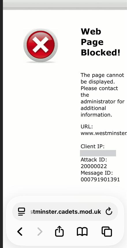 This error indicates that the Westminster firewall has identified your device or network as posing a risk.
